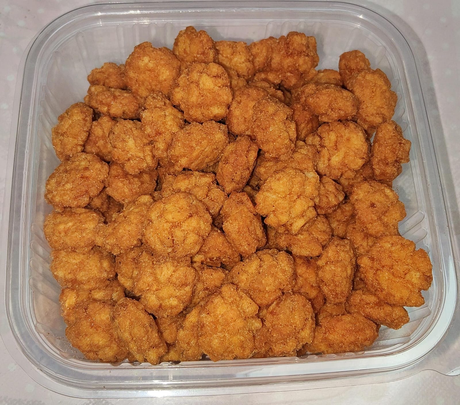 Hemos seleccionado ingredientes que mantienen la integridad estructural tras el envasado, evitando que los componentes más delicados pierdan su textura. Esto da como resultado una tarrina de 300 gramos pensada para compartir en reuniones, como acompañamiento en celebraciones o simplemente para quien disfruta de sabores con identidad. En boca se alternan crujientes intensos con piezas más suaves y un condimento que remarca notas de comino, pimentón y un fondo cítrico ligero.